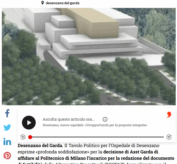 Lo scorso 18 Gennaio 2024 i consiglieri regionali Delbono e Cominelli hanno presentato un’interrogazione per sapere se ASST Garda abbia presentato il nuovo studio di fattibilità e come intenda ASST Garda procedere per la realizzazione… Risposta all’Interrogazione ITR/2284