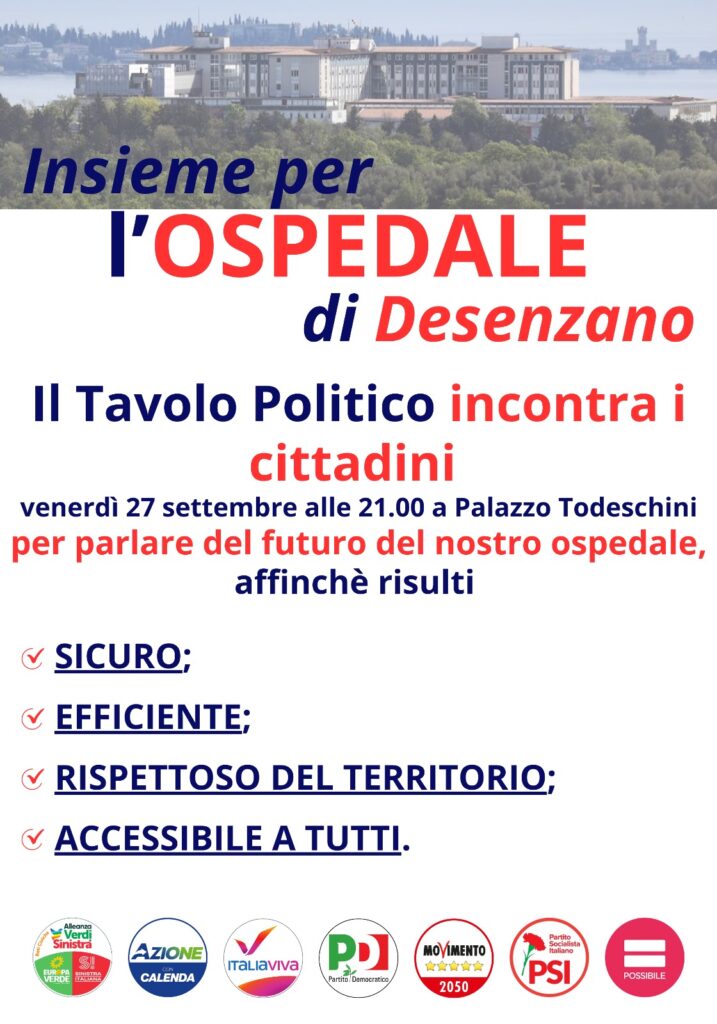 Il prossimo 27 Settembre il Tavolo Politico incontrerà i cittadini. Nell’incontro, verrà illustrato lo studio di fattibilità redatto da ASST Garda per Regione Lomabardia e analizzate tutte le alternative preveiste. Maggiore attenzione sarà posta sulla scelta principale (c.d. Ospedale nella Buca) e si illustreranno le criticità incontrate che non la rendono la soluzione migliore per Desenzano.