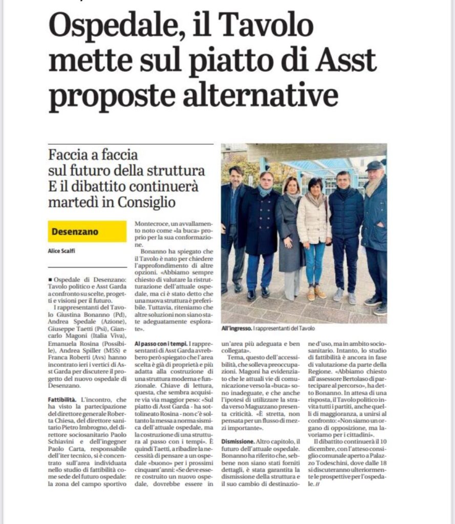 Home » Attività del Tavolo » Ospedale, il Tavolo mette sul piatto di Asst proposte alternative